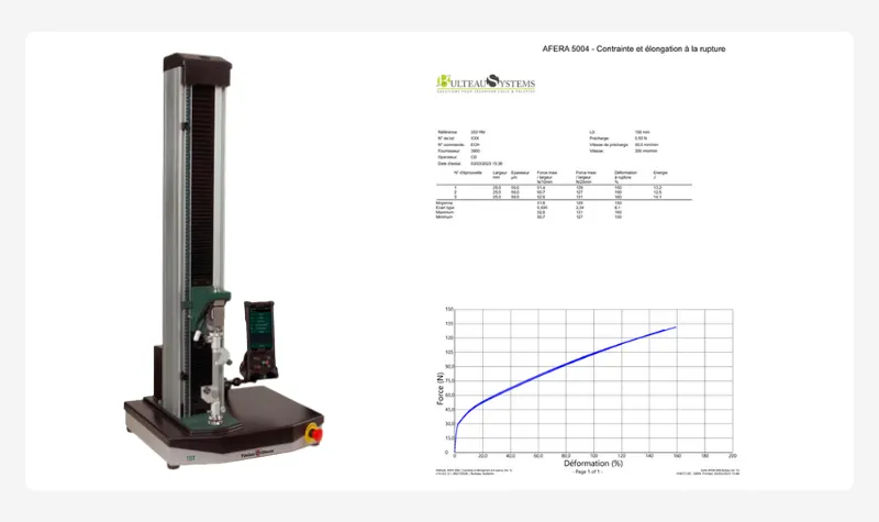 Notre laboratoire intégré est équipé de différents instruments de mesures nous permettant de vérifier la conformité de nos produits avec les normes auxquelles ils doivent répondre, en voici quelques exemples :