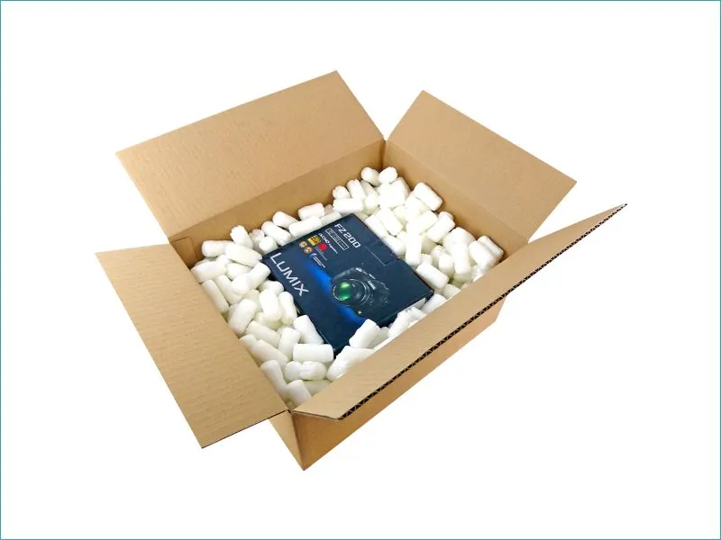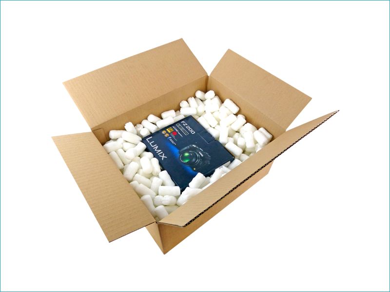 Nous vous conseillons de déposer une première couche de particules au fond de votre carton, de déposer votre produit et de le recouvrir d'une seconde couche de particules.