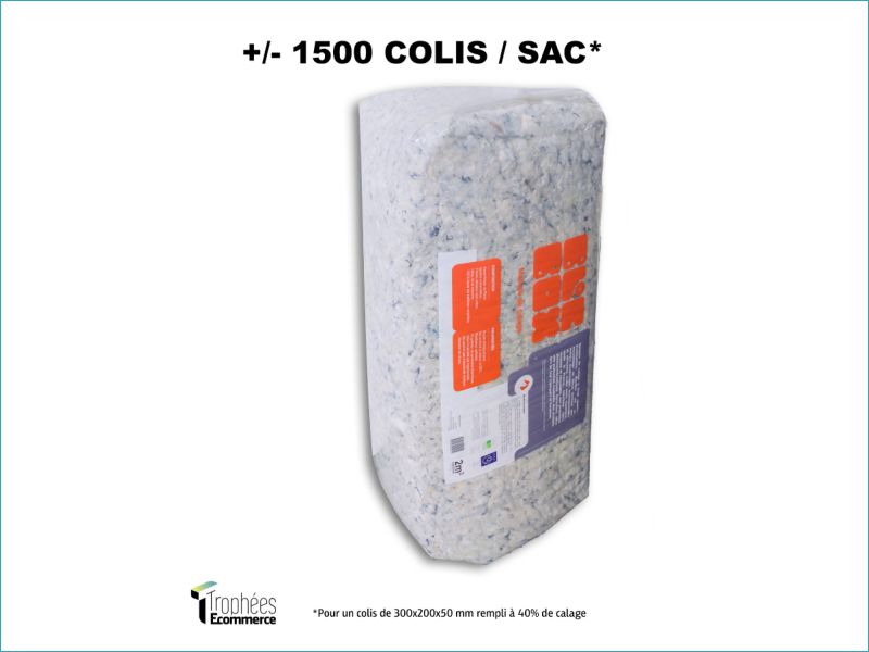Evitez la casse et le vide avec une solution de calage 100% recyclée et recyclable ! Palettisé par palette de 80 x 120 x 170 cm. Un sac fait 2m3 et fait 80 x 40 x 40 cm. Matière très légère avec un poids de 5kg/m3. Ce produit est une ouate à mémoire de forme avec de grandes propriétés de protection thermique. L'humidite est géré par hygroscopie. Pas d'électricité statique et résistante à la perforation. Particulièrement adapté au e-commerce, à l'industrie et aux logisticiens. Une solution innovante en ouate textile qui convient pour envelopper, protéger, remplir le vide à l'intérieur de vos colis. Ce produit peut être recyclé dans des points relais textile et peut-être réutilisable. Convient parfaitement pour remplacer les particules de calage. Les particules de calage en fibres textiles recyclées et naturelles représentent une solution de calage innovante et durable, parfaitement adaptée aux besoins des entreprises, e-commerçants et logisticiens. Composées de fibres variées telles que le coton, la laine, le lin et le chanvre, ces particules sont conçues pour absorber efficacement les chocs, protégeant ainsi vos produits des dommages lors du transport. Leur légèreté, avec un poids de seulement 5 kg/m3, facilite la manipulation et contribue à réduire les coûts de transport. En plus d'être réutilisables, elles sont exemptes de chlore, de CFC et d'agents polluants. La ouate à mémoire de forme assure une protection thermique optimale, tandis que leur gestion de l'humidité par hygroscopie et leur résistance à la perforation ajoutent une couche de sécurité. Conditionnées par sac de 2 m3, ces particules sont idéales pour remplir les vides à l'intérieur des colis, tout en étant recyclables dans des points relais textile.