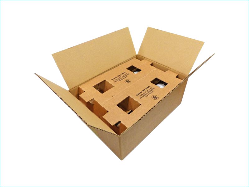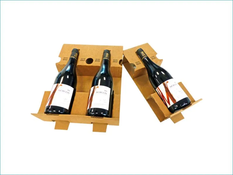 Rapide à mettre en œuvre, le calage antichoc se forme par simple pression sur les cotés. Il est conçu pour emballer, protéger et expédier 1, 2 ou 3 bouteilles de 75 cl à l’aide de caisses carton adaptées (vendues séparément). Grâce à sa conception, le contenu est parfaitement protégé lors du transport, aucun contact ne se fait entre la bouteille et le bord de la caisse. Livrée à plat, chaque plaque est constitué de 3 demi-coques sécables. Le calage carton antichoc fait partie d'une gamme brevetée permettant l'envoi postal ou par messagerie de 1 bouteille. Son montage ultra-rapide assure une protection maximale de vos produits, évitant tout contact entre la bouteille et le bord de la caisse. Ce calage peut être utilisé pour l'envoi dans une même caisse de plusieurs bouteilles.