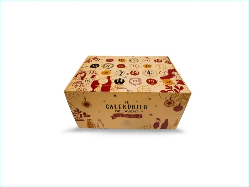 Idéal pour mettre en valeur vos bières artisanales ! Découvrez notre packaging calendrier de l'Avent kraft spécial brasseurs, offrant la possibilité de goûter 24 bières différentes grâce à un packaging personnalisable. Ce calendrier assure un transport ultra-sécurisé grâce à ses fausses cases et ses croisillons adaptés. Le calendrier de l'Avent brasseurs kraft est la solution idéale pour les amateurs de bière artisanale souhaitant explorer de nouvelles saveurs pendant la période festive. Conçu pour accueillir 24 bières différentes, ce packaging élégant et personnalisable grâce à un stickers à l'avant permet à chaque brasserie de se mettre en avant.