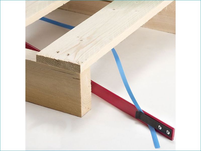 - Insérer le feuillard dans l’encoche prévu à cet effet et glisser le passe-feuillard sous la palette ou le colis et récupérer le passe-feuillard de l'autre côté de la palette.