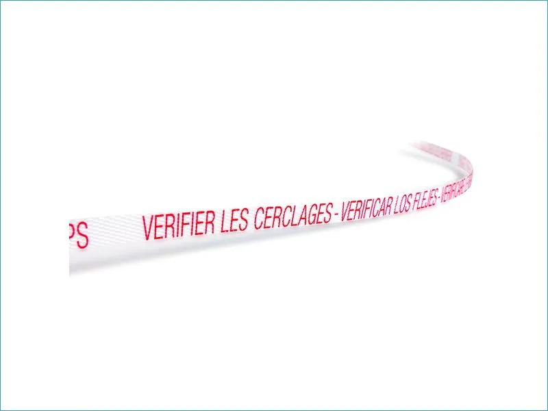 - Feuillard imprimé « Vérifier les cerclages » en 4 langues (français, anglais, espagnol et italien).