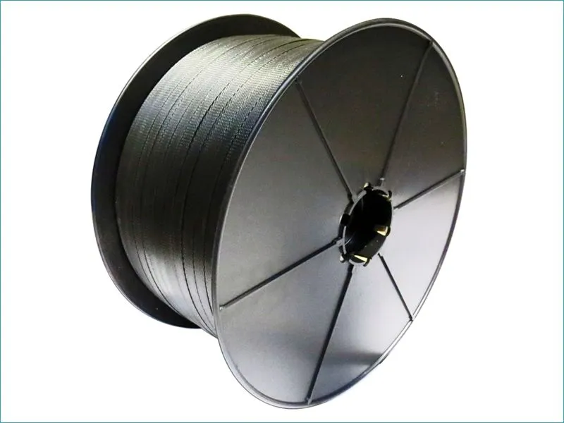 Feuillard polypropylène noir 12 mm x 0,6 x 1500 M avec joues plastiques