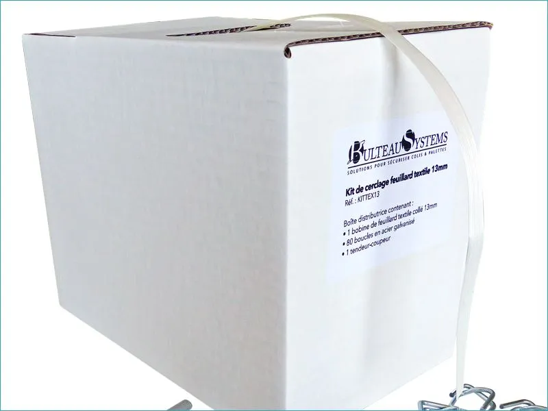 Un kit facile d'emploi pour assurer la tension de serrage de vos produits. Facile à transporter, il vous accompagne là où vous avez besoin. Feuillard en boîte distributrice. Découvrez la solution idéale pour vos besoins de cerclage ponctuels avec le kit de cerclage textile fil à fil 13 mm. Ce kit pratique et économique vous permet de sécuriser vos envois sans avoir besoin d'outils ou de machines, ce qui le rend parfait pour les opérations logistiques ou l'entreposage occasionnel. Grâce à sa conception astucieuse, il assure une tension de serrage optimale, garantissant la sécurité de vos produits. Facile à transporter, ce kit vous accompagne partout où vous en avez besoin, offrant une flexibilité inégalée. De plus, le feuillard est conditionné dans une boîte distributrice pratique, simplifiant encore davantage son utilisation. Optez pour une solution de cerclage efficace et sans tracas, qui s'adapte à tous vos besoins professionnels.