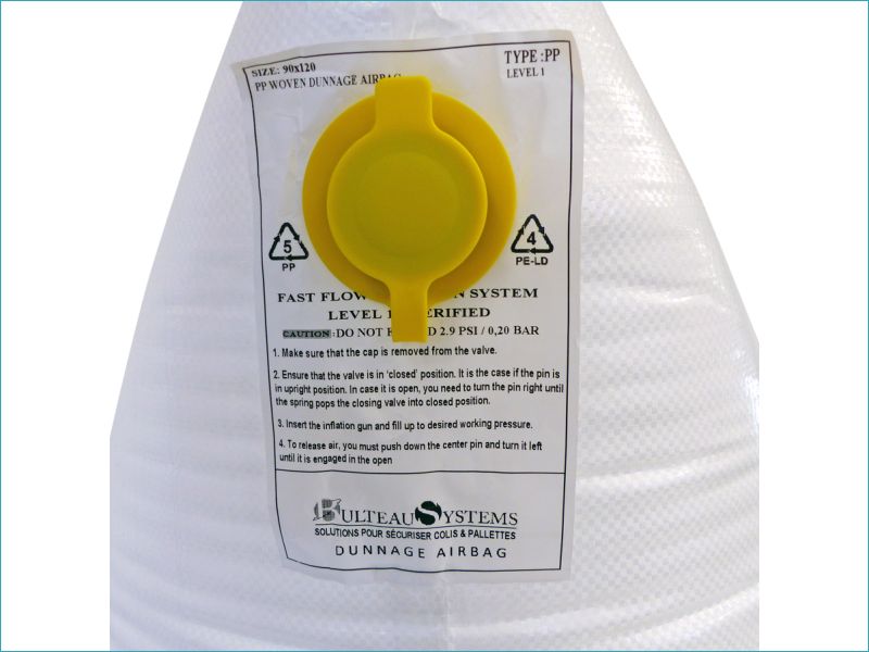 Le pistolet de gonflage (réf. PBDG3), disponible en complément, permet de gonfler les coussins en seulement quelques secondes. Le Coussin de calage PP pour container 90 x 120 cm est conçu pour immobiliser efficacement les palettes, les protégeant ainsi des secousses durant le transport. Sa résistance à la perforation et à l'humidité assure une protection optimale. L'accès aisé à la valve sur le côté facilite un gonflage rapide en quelques secondes. Ce coussin réutilisable favorise des économies et une démarche écoresponsable. Il est spécifiquement adapté aux containers de 90 cm de largeur et de 120 cm de longueur et doit être utilisé avec le pistolet de gonflage PBDG3.