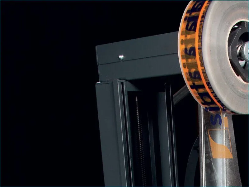 Grâce aux 2 courroies d’entraînement latérales d’une hauteur de 75 mm et aux 2 unités de dépose d’adhésif, elle permet une fermeture parfaite du carton.
