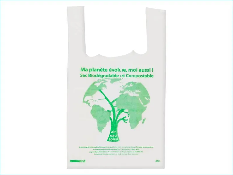 Idéal pour les fruits et légumes ! Fabriqué à partir de 50% d'amidon de maïs et 50% de copolyester, compostable. Pratique avec ses poignées bretelles et ses soufflets il permettra une manipulation facilitée. Découvrez notre sac plastique biosourcé à bretelles, l'allié éco-responsable pour vos fruits et légumes. Conçu avec 50% d'amidon de maïs et 50% de copolyester, ce sac de 26 x 45 cm est entièrement compostable et conforme à la loi de transition énergétique. Sa conception pratique avec poignées bretelles et soufflets assure une manipulation aisée. Certifié « OK Home compost », il garantit un contact alimentaire sécurisé. Chaque sac affiche clairement les mentions légales et son code barre, témoignant de son engagement pour l'environnement.